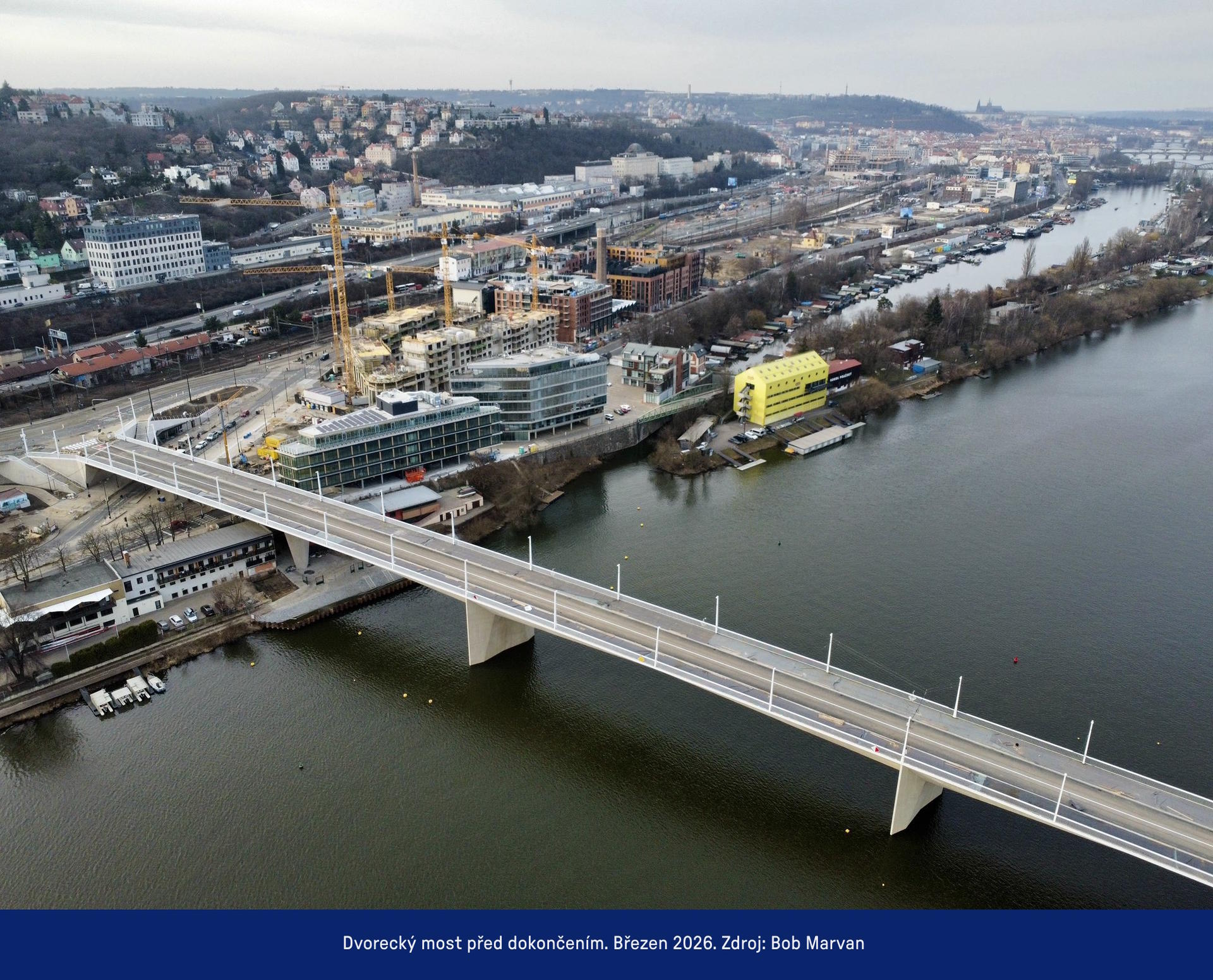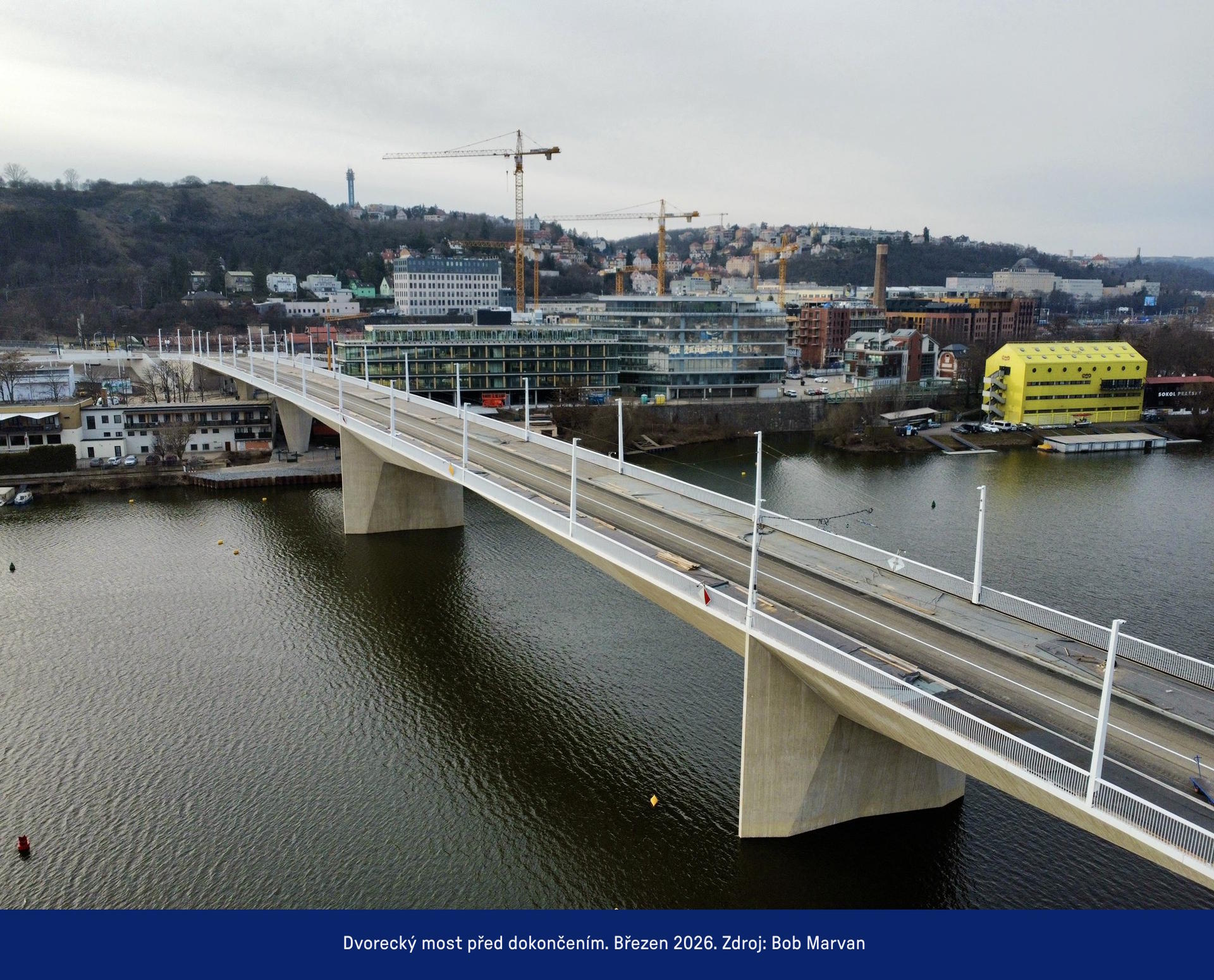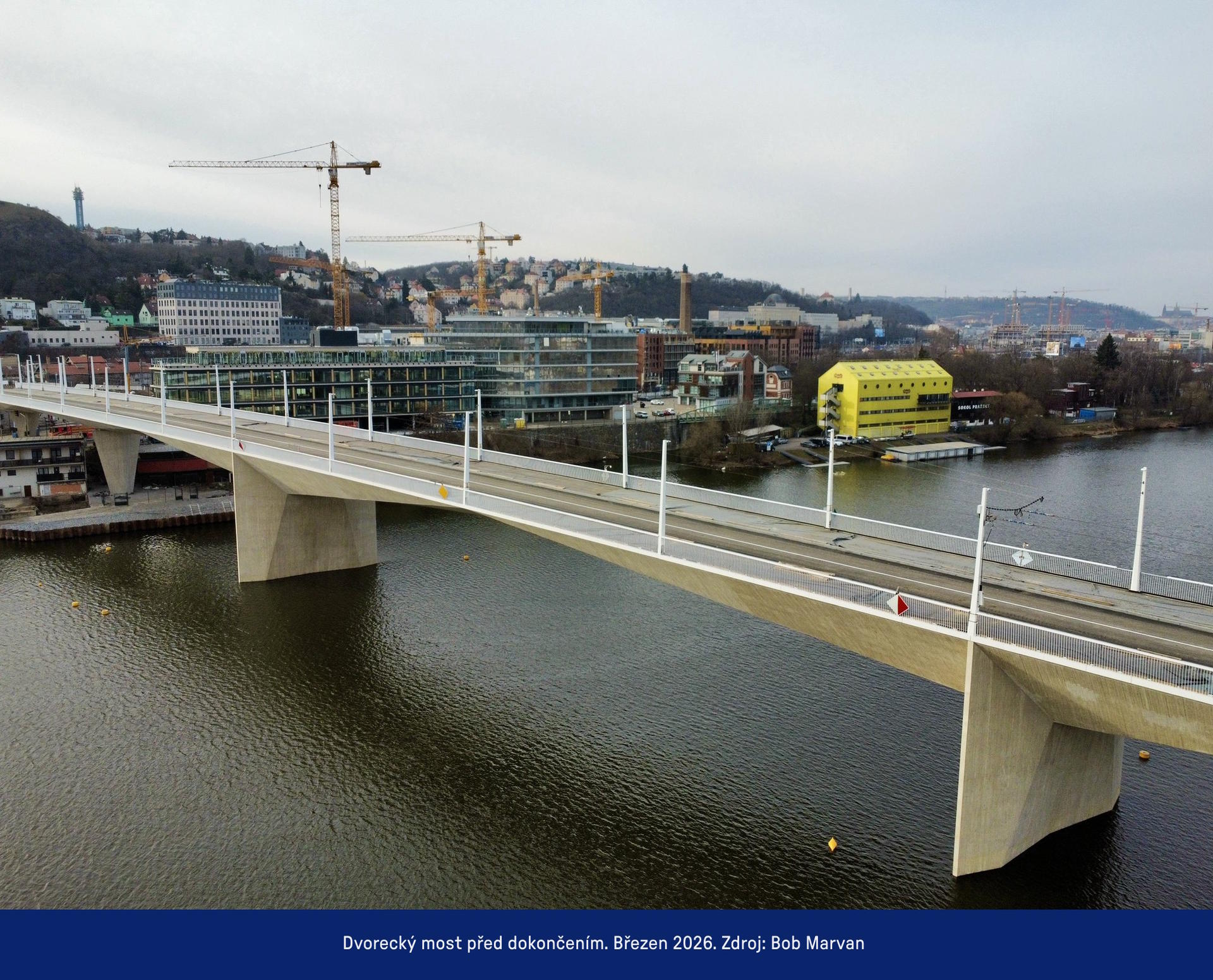 Od prvních příprav monumentárního Dvoreckého mostu až po jeho zprovoznění v dubnu 2026 uteklo 10 let. Mohutná stavba mostní konstrukce o 6 pilířích se potýkala na počátku se složitou geologií v korytě Vltavy. Během 3,5 roku výstavby stálo před stavebníky i projektanty několik dalších výzev.